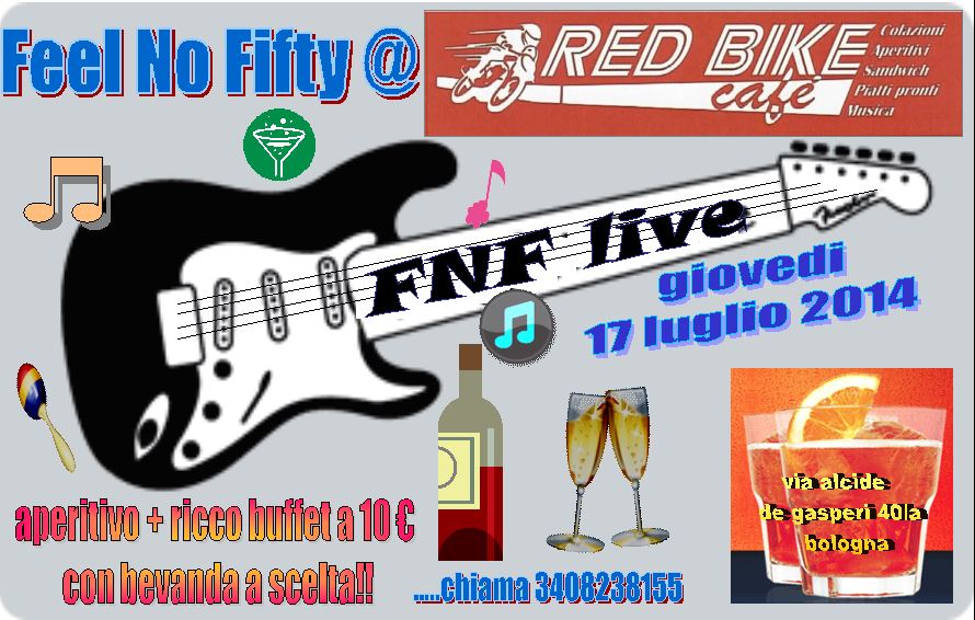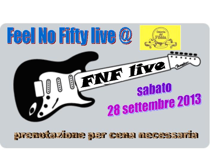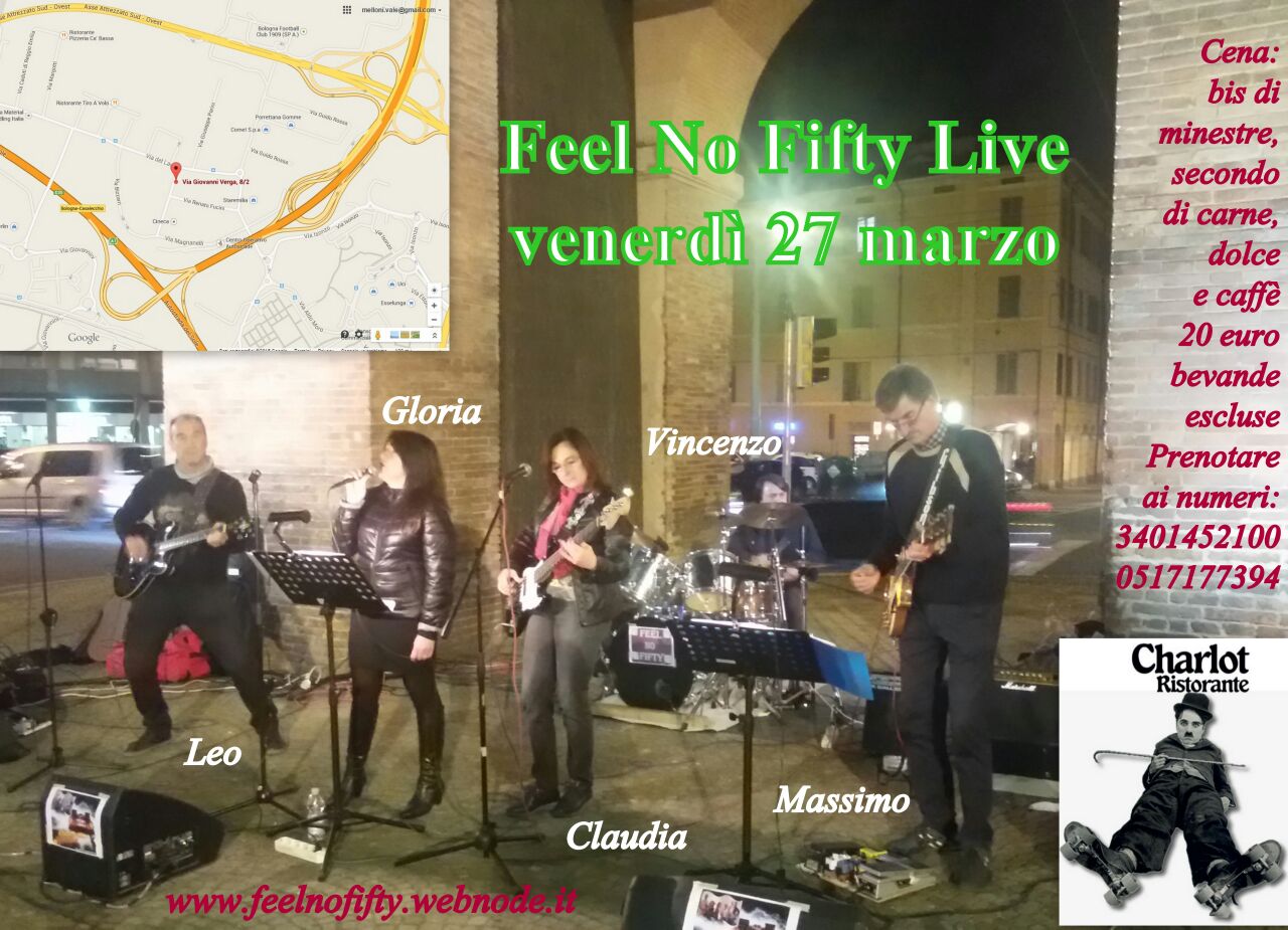Feel no fifty è una band bolognese formata da un gruppo di amici di lunga data con la passione della musica e delle sfide. Il nostro scopo è condividere il gusto ed il piacere di suonare insieme attraverso un variegato repertorio che spazia dal rock anni 60 e 70 ad alcune contaminazioni più recenti . I nostri live incoraggiano la partecipazione del pubblico con alcuni brani ballabili ed anche cantabili ! Vi aspettiamo al prossimo live!